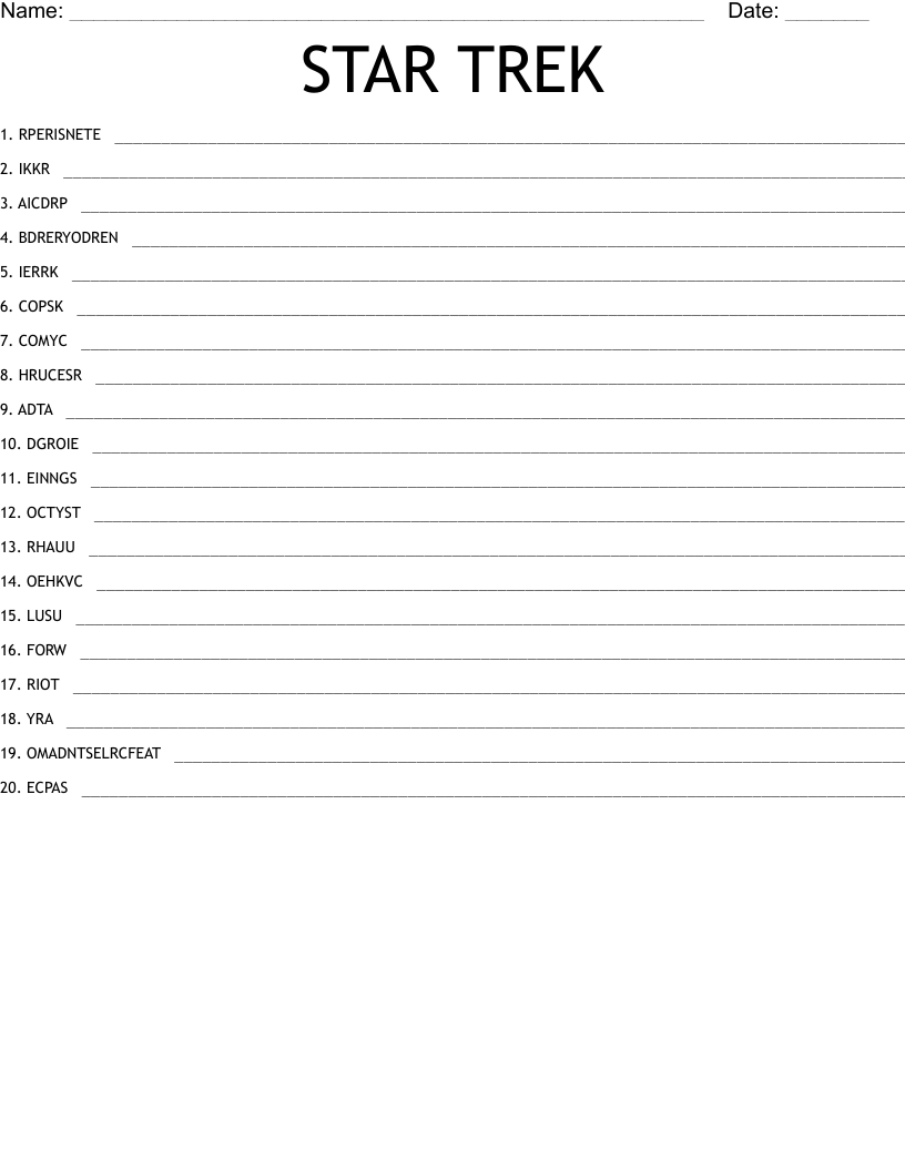 STAR TREK Word Scramble WordMint